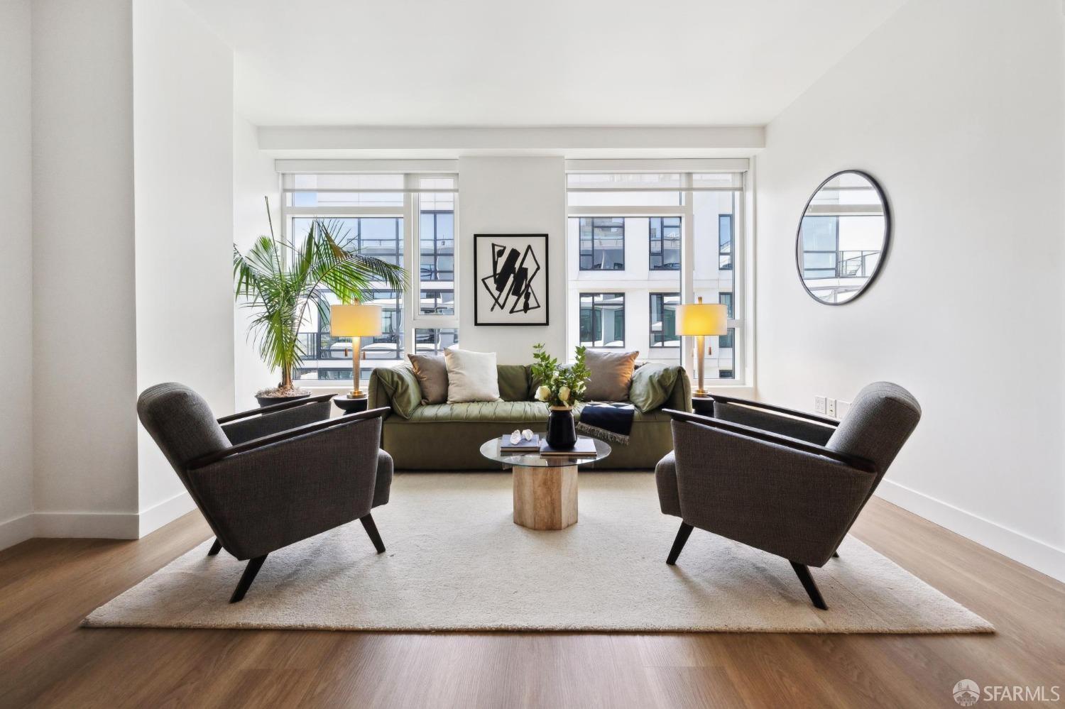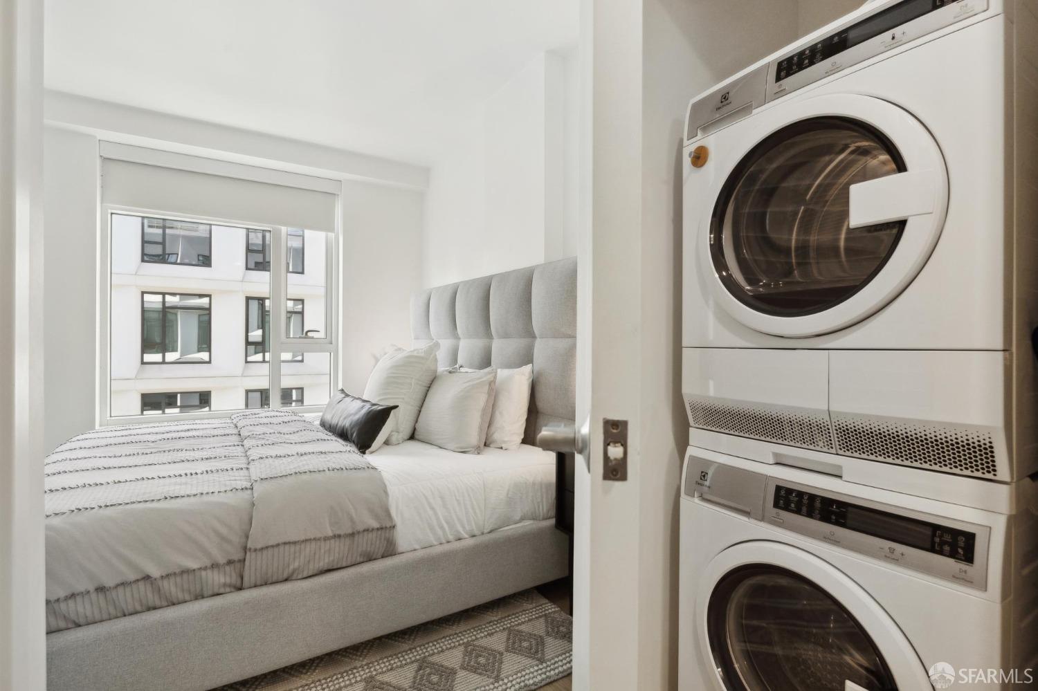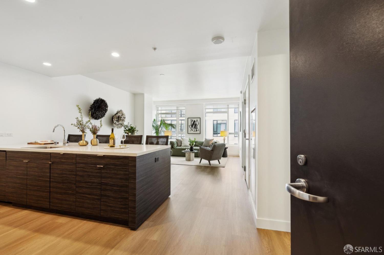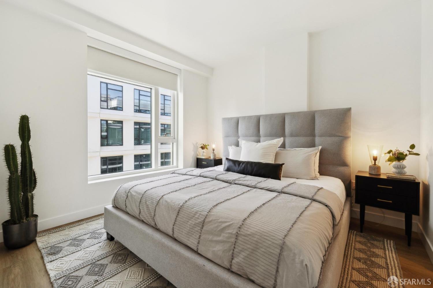 Welcome to residence E1209 at The Rockwell a sophisticated 1-bedroom, 1-bathroom residence in Pacific Heights. This modern home features an open floor plan with a high-end kitchen seamlessly connecting to the living and dining areas, ideal for entertaining. The spacious bedroom accommodates a king-size bed and offers generous pass-through closets leading to a sleek bathroom with dual access for versatility. Enjoy brand-new engineered hardwood flooring, central air conditioning, in-unit laundry, and stunning city views from the 12th floor. One-car stacked parking included. Residents benefit from upscale amenities: a 24-hour attended Grand Solarium Lobby, lush interior courtyard with fireplace and BBQ, Sky Lounge with firepit and panoramic views, well-equipped fitness center, stylish Owner's Club with gourmet kitchen and screening room, bike storage, on-site EV car rentals, four high-speed elevators, and a pet-friendly community. With Whole Foods on the block and easy access to tech shuttles, Polk Street, Downtown, and Pacific Heights, this is sophisticated, effortless city livingwelcome home.