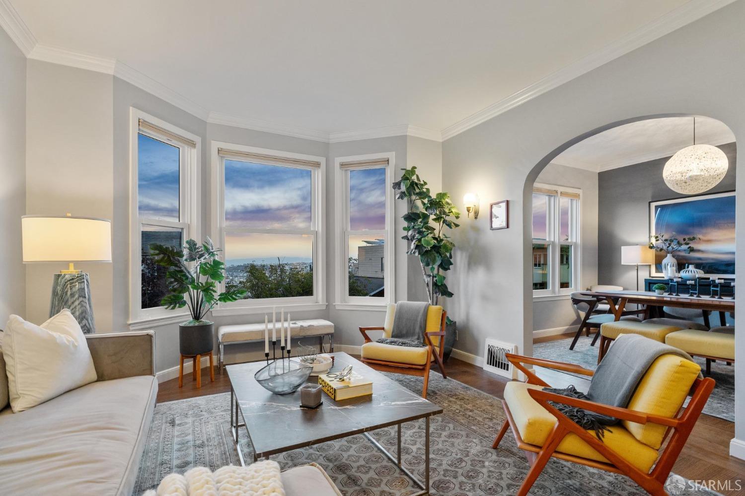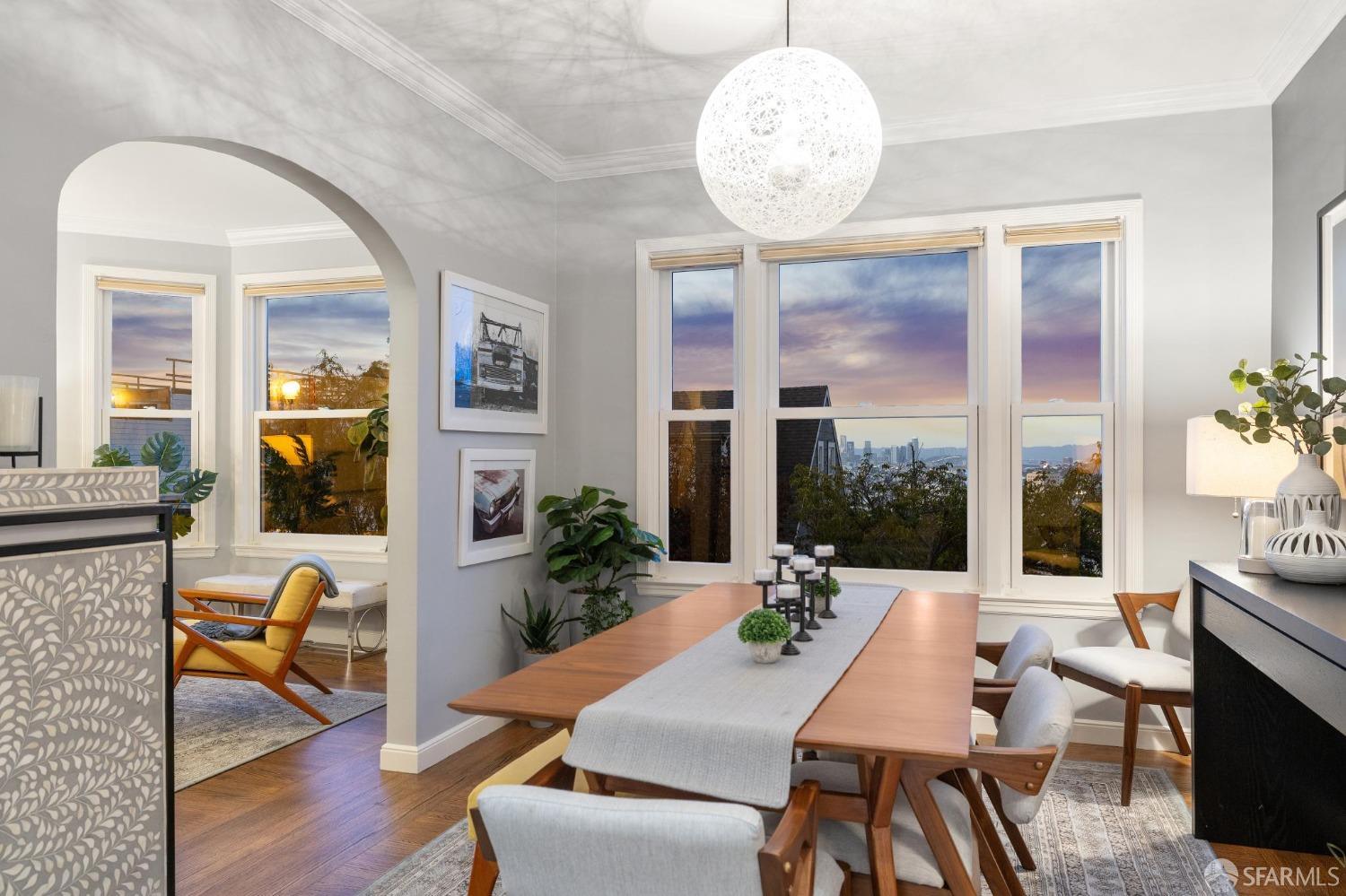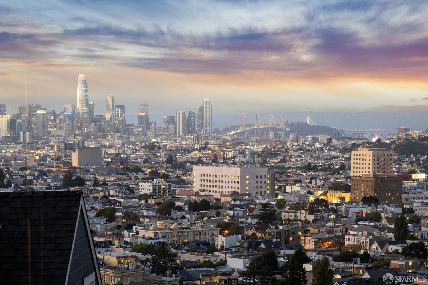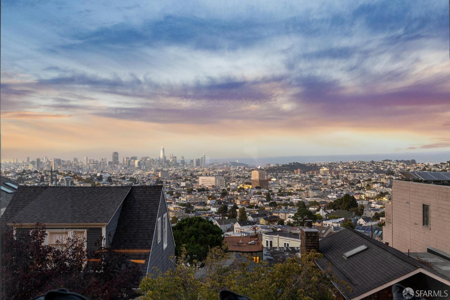Welcome to 178 Laidley, a stunning remodeled home in Fairmount Heights offering panoramic views of the bay, downtown San Francisco, and the East Bay hills. This contemporary home blends modern updates with classic charm. Step inside to discover a remodeled kitchen, a formal living room with fireplace and a formal dining room. The main level also features a new powder room and seamless access to a terraced garden, ideal for both entertaining and relaxing. Upstairs, you'll find two spacious bedrooms, a home office, and a beautifully updated bathroom. Each room boasts captivating city views, and the large patio overlooks the lush garden, enhancing your indoor-outdoor living experience. Additional highlights include an expansive 2-car side-by-side garage with ample storage and washer/dryer for added convenience. The 100 block of Laidley Street ensures unobstructed views with all utilities underground. Conveniently located, Laidley Street offers easy access to Muni in Noe Valley, BART in Glen Park, and major commuter routes like I-280 and Peninsula tech/bio tech buses. This home provides an ideal work-from-home setup and is perfectly situated for commuters. 178 Laidley is the embodiment of San Francisco living. Your dream home awaits - Live on Laidley!