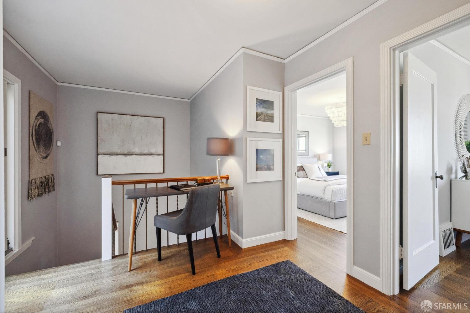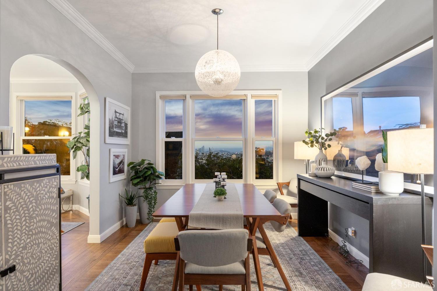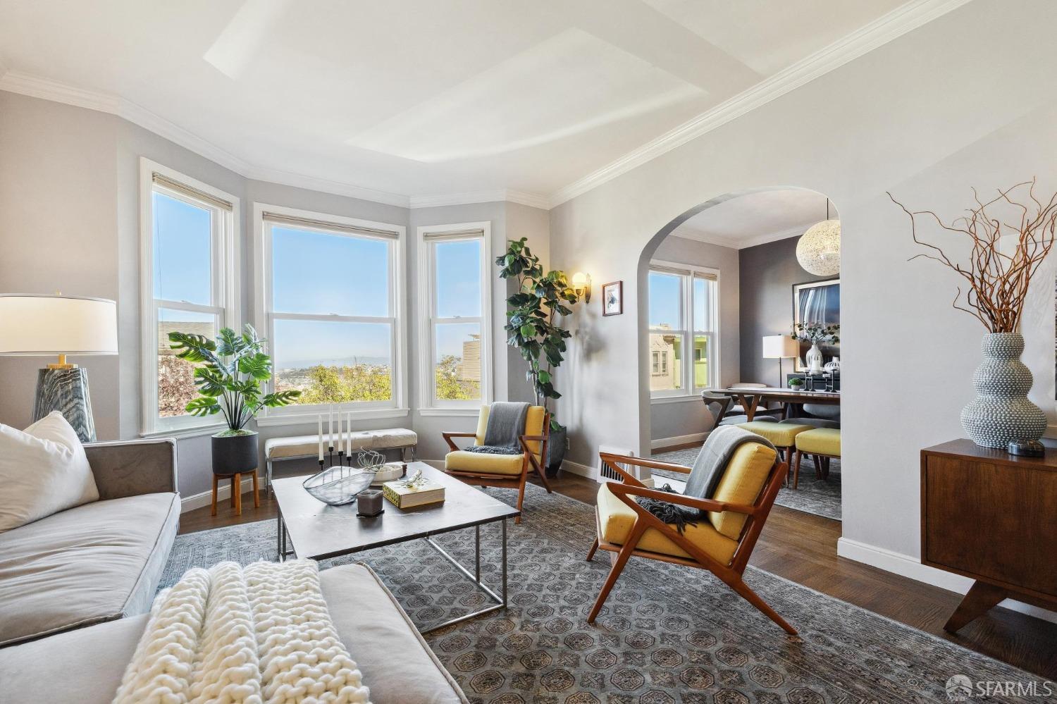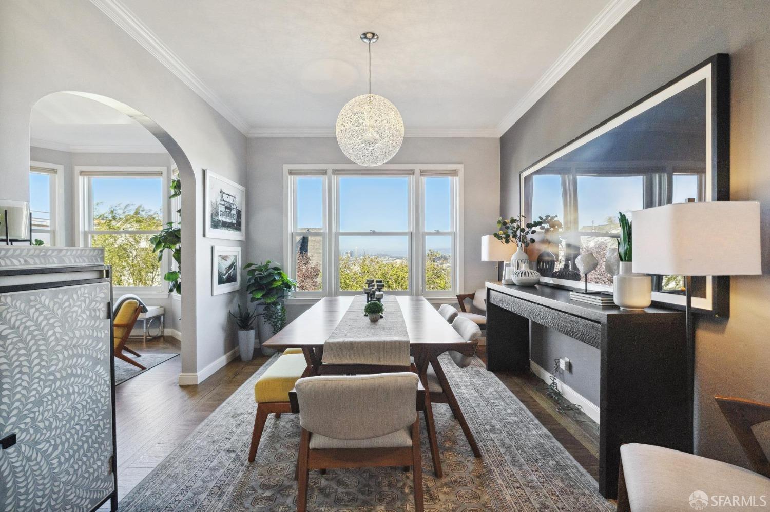 Welcome to 178 Laidley, a stunning remodeled home in Fairmount Heights offering panoramic views of the bay, downtown San Francisco, and the East Bay hills. This contemporary home blends modern updates with classic charm. Step inside to discover a remodeled kitchen, a formal living room with fireplace and a formal dining room. The main level also features a new powder room and seamless access to a terraced garden, ideal for both entertaining and relaxing. Upstairs, you'll find two spacious bedrooms, a home office, and a beautifully updated bathroom. Each room boasts captivating city views, and the large patio overlooks the lush garden, enhancing your indoor-outdoor living experience. Additional highlights include an expansive 2-car side-by-side garage with ample storage and washer/dryer for added convenience. The 100 block of Laidley Street ensures unobstructed views with all utilities underground. Conveniently located, Laidley Street offers easy access to Muni in Noe Valley, BART in Glen Park, and major commuter routes like I-280 and Peninsula tech/bio tech buses. This home provides an ideal work-from-home setup and is perfectly situated for commuters. 178 Laidley is the embodiment of San Francisco living. Your dream home awaits - Live on Laidley!