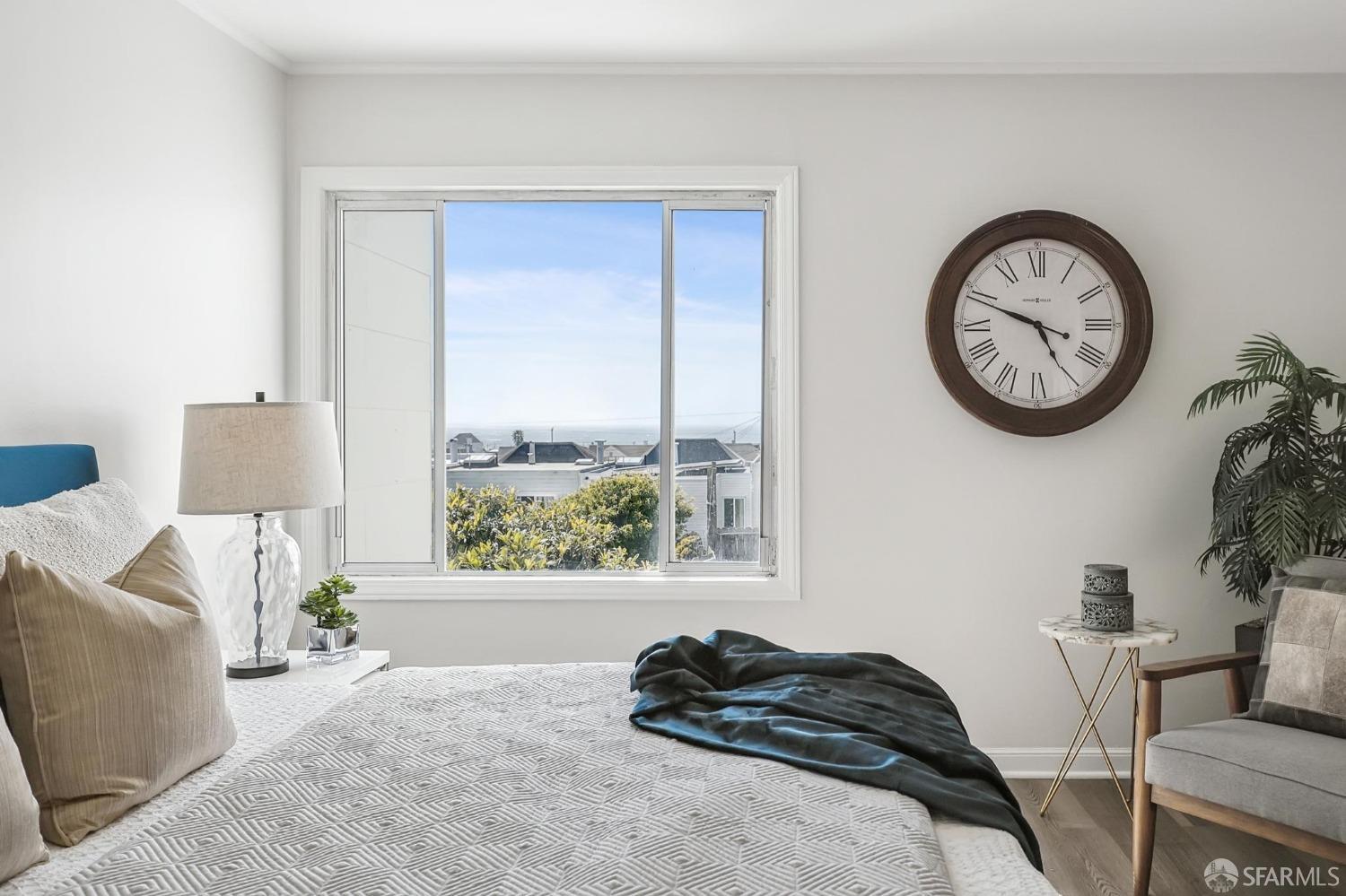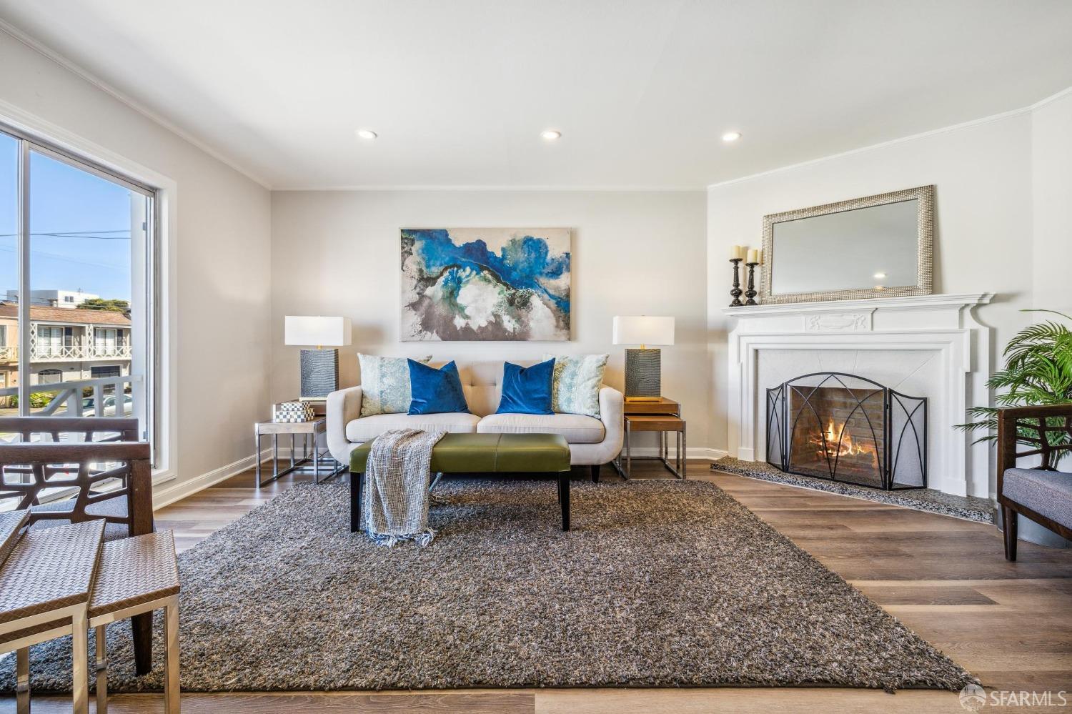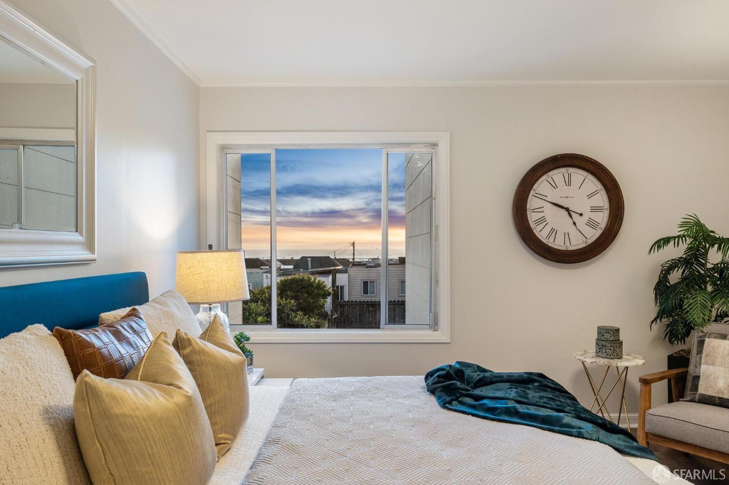 This exquisite home boasts breathtaking ocean views and a blend of modern amenities with classic charm. The top floor features two bedrooms plus a sunroom, updated bathroom, and a newly remodeled kitchen with new appliances and ample counter space. The inviting living room offers a cozy fireplace, while the sunroom can serve as a third bedroom, home office, or relaxation space with panoramic ocean vistas. The lower level includes another bedroom, a spacious family room, and an updated bathroom. With fresh paint inside and out, new floors, and a new roof, this home is move-in ready. The large rear yard awaits your personal touch for gardening. A one-car garage with laundry hookups completes the package. Situated in a prime location, enjoy easy access to shops, dining, parks, and transportation. Experience stunning sunsets and a vibrant culinary scene just moments away. This property offers the perfect backdrop for relaxation and entertainment alike.