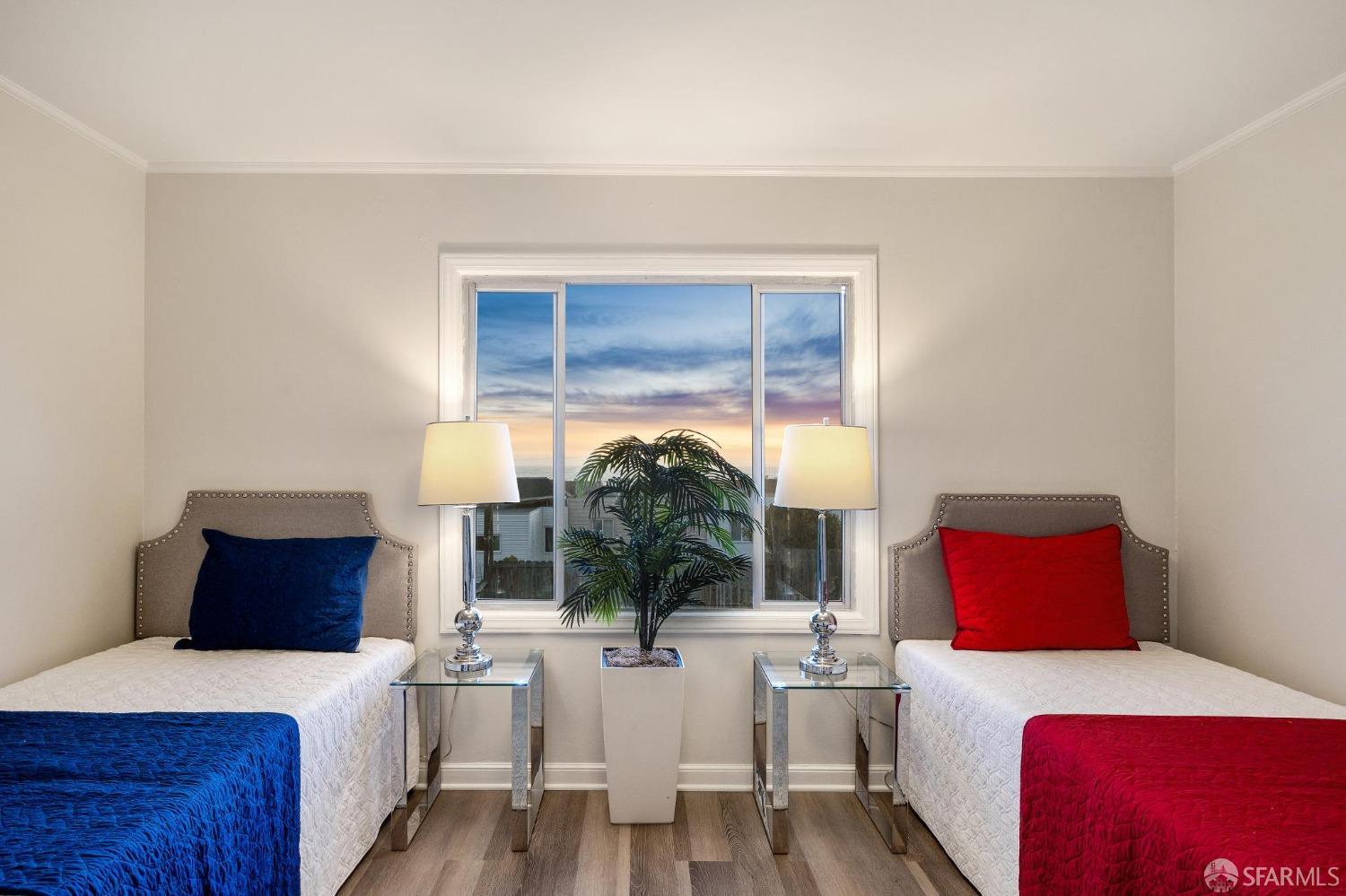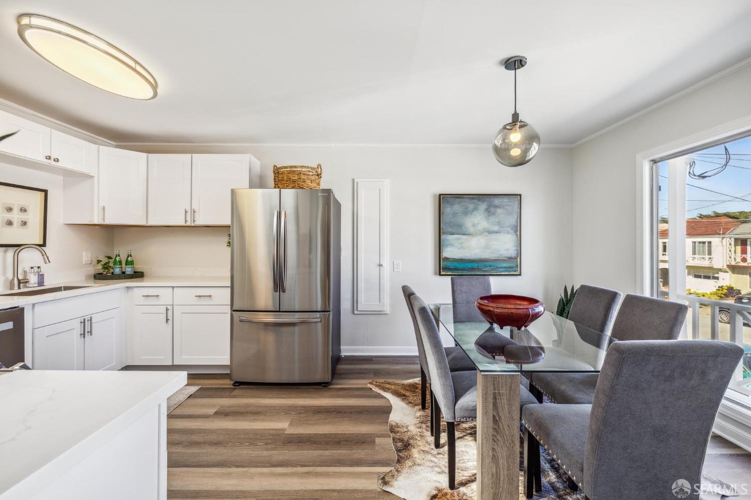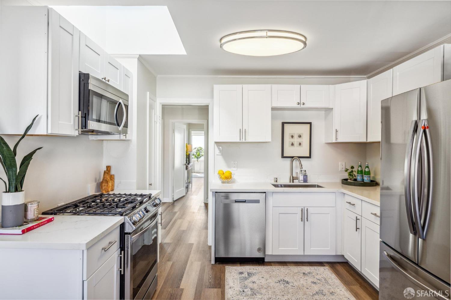 This exquisite home boasts breathtaking ocean views and a blend of modern amenities with classic charm. The top floor features two bedrooms plus a sunroom, updated bathroom, and a newly remodeled kitchen with new appliances and ample counter space. The inviting living room offers a cozy fireplace, while the sunroom can serve as a third bedroom, home office, or relaxation space with panoramic ocean vistas. The lower level includes another bedroom, a spacious family room, and an updated bathroom. With fresh paint inside and out, new floors, and a new roof, this home is move-in ready. The large rear yard awaits your personal touch for gardening. A one-car garage with laundry hookups completes the package. Situated in a prime location, enjoy easy access to shops, dining, parks, and transportation. Experience stunning sunsets and a vibrant culinary scene just moments away. This property offers the perfect backdrop for relaxation and entertainment alike.