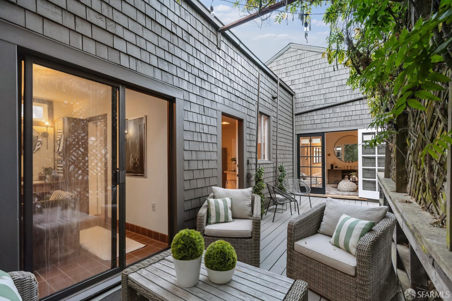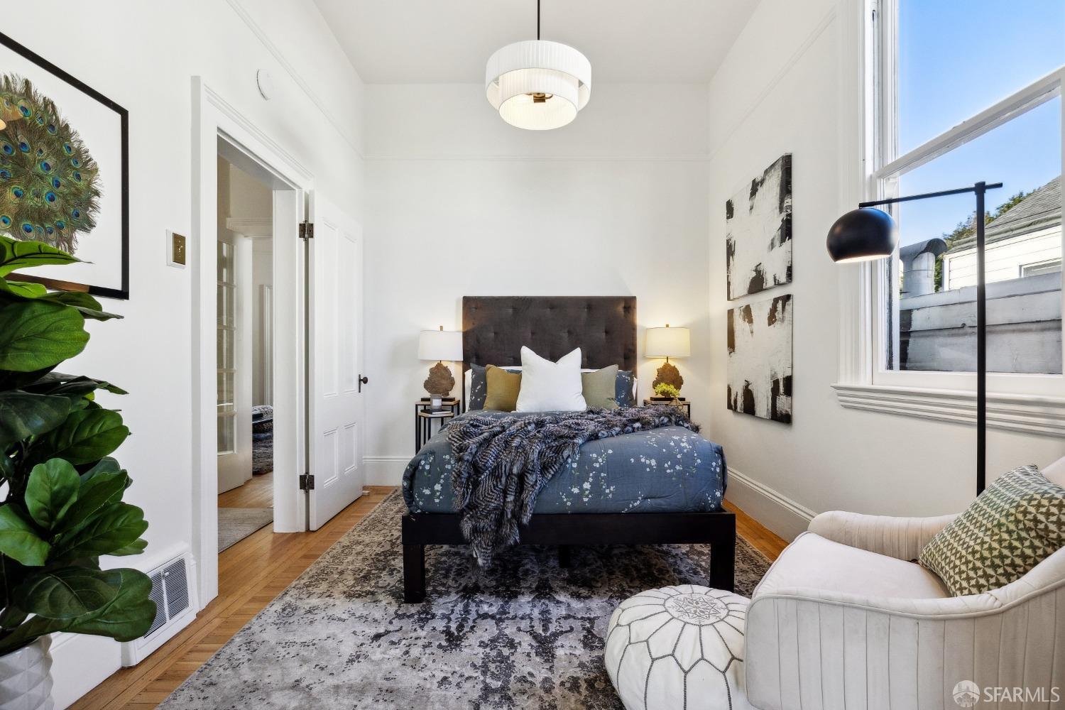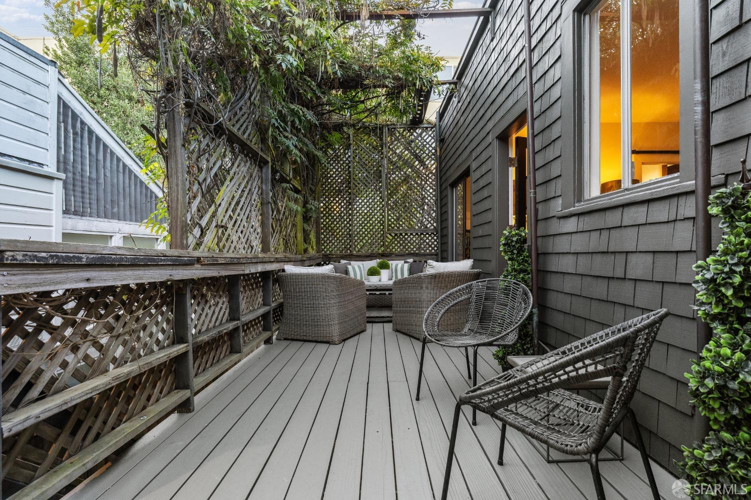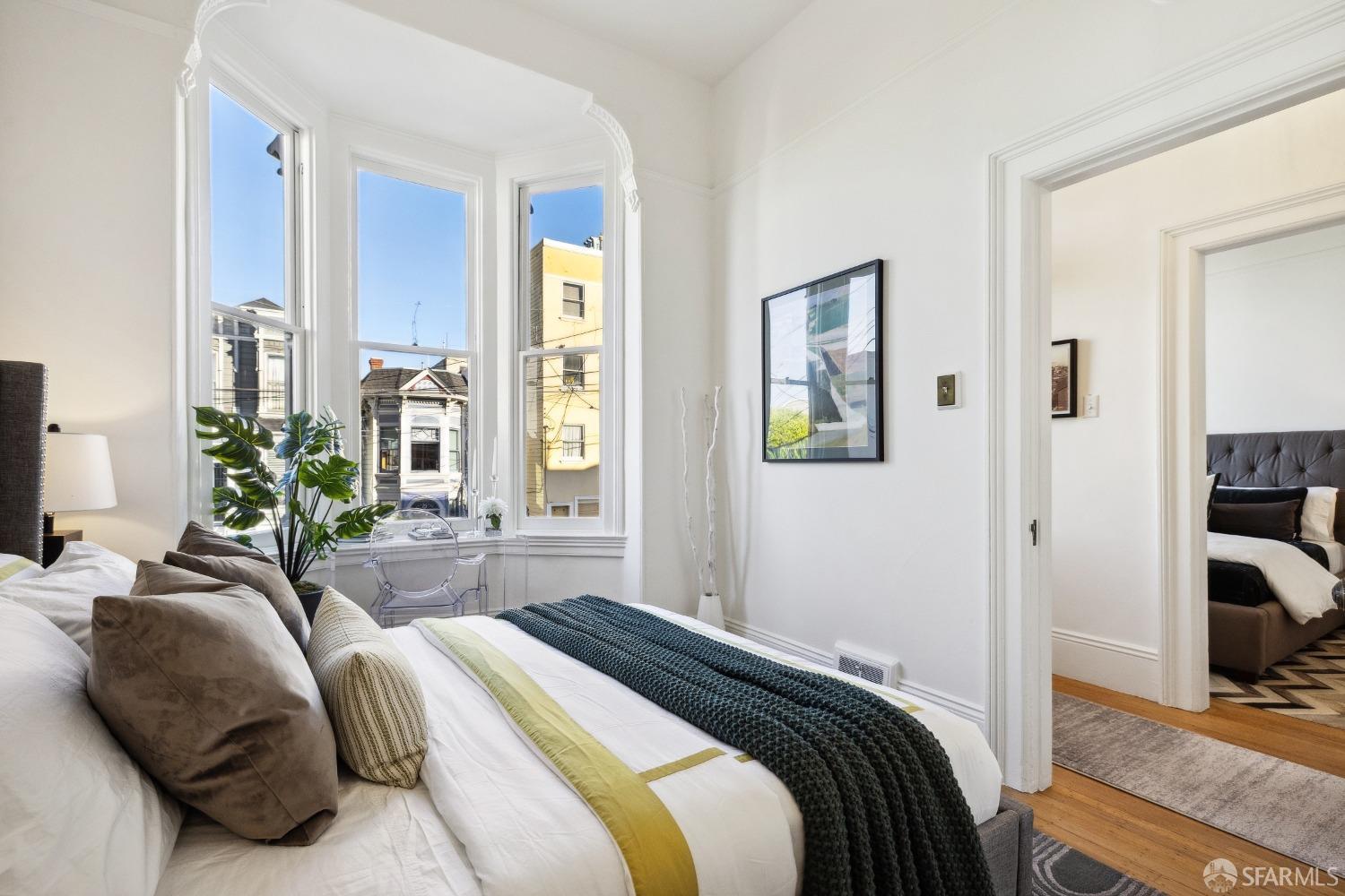 Fall in love on Chattanooga Street! This enchanting 1876 Italianate Victorian in Noe Valley blends historic charm with modern comfort. Just steps from 24th Street's lively corridor, this 4-bedroom, 2.5-bath residence offers a flexible layout perfect for today's lifestyle. The main level features high ceilings, 2-3 bright bedrooms, 1.5 baths, and a cozy sitting area with a fireplace. The front double parlor can serve as two bedrooms or a bedroom and office, while the spacious living room opens to a private deck. The sunlit kitchen flows to a terrace and lush backyard, ideal for entertaining. The lower level, with its own entrance, includes a one-bedroom suite for multi-generational living, home office, or rental income, complete with a remodeled bath, kitchen, and light-filled living room. With over 2,000 square feet, charming outdoor spaces, garage parking, and ample storage, this home balances whimsy and convenience. A rare opportunity to own a piece of San Francisco history with vibrant appealwelcome home!