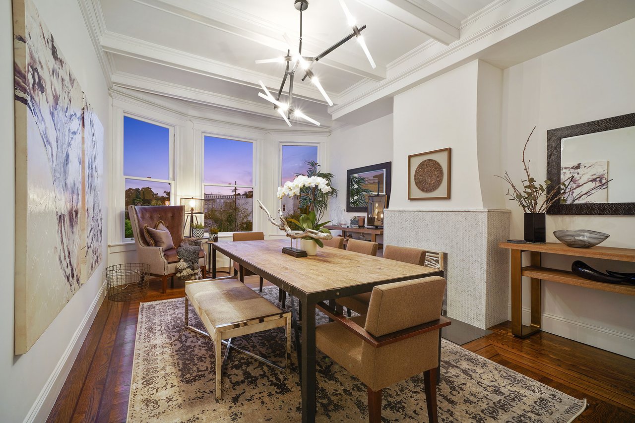 This beautifully maintained top-floor Edwardian flat features 3 bedrooms + a home office / 4th bedroom, and 1 ½ bathrooms with over 1800 square feet of flexible living space. This expansive residence combines classic architectural details with modern design. Featuring a thoughtful floor plan with generously proportioned rooms, a spacious kitchen and formal dining room. Showcasing artisan craftsmanship, 647 Cole features gleaming hardwood floors with walnut inlays, high ceilings, contemporary lighting, period moldings and trim details, and is flooded with natural light. Exclusive use for this home is a 1,000 sq. ft. attic with potential development into additional living space. Located on the border of the Cole Valley and Haight Ashbury neighborhoods, this home is convenient to fine and casual dining, parks and recreation, freeway access and has access to public and private transportation.