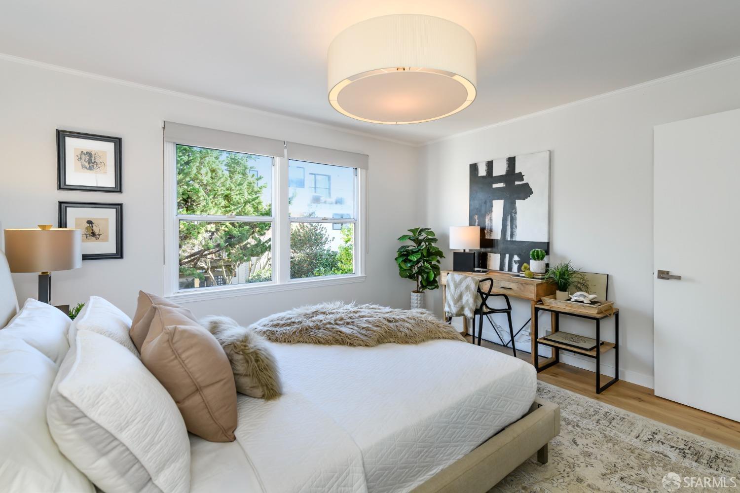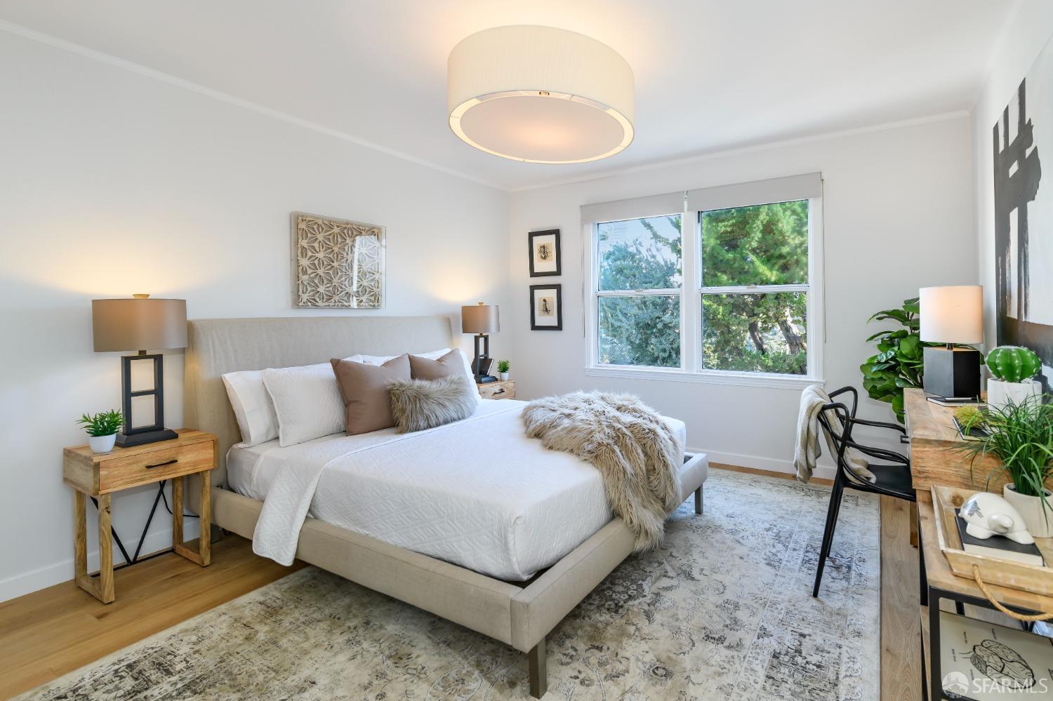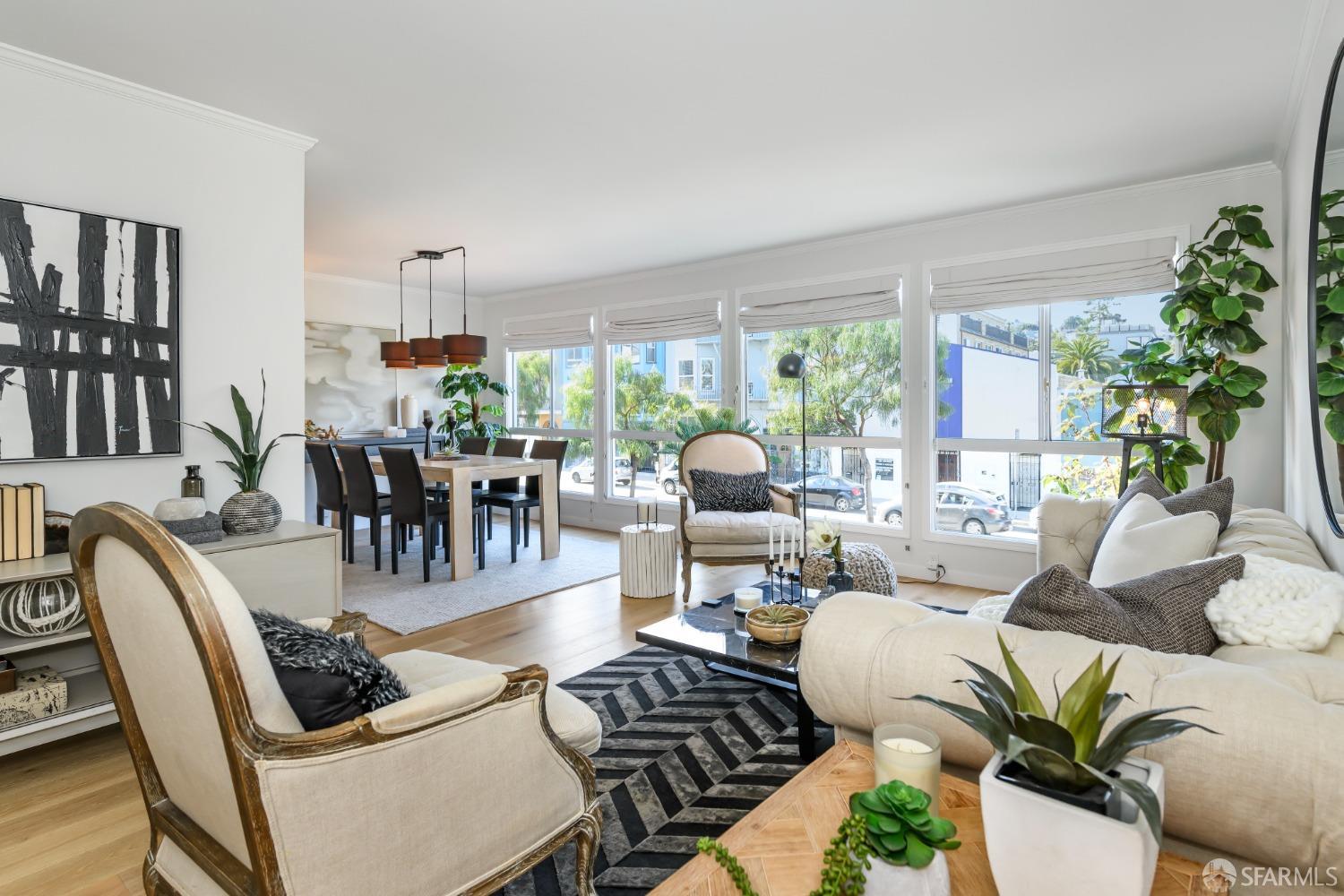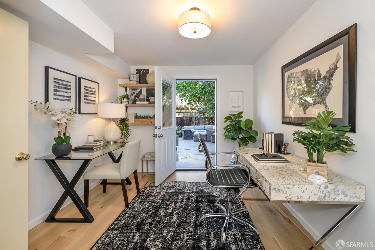 Live steps from Dolores Park and the Valencia Corridor in this bright, remodeled, mid-century condominium. This full-floor renovated flat has it all: 2 bedrooms (one master suite), 2 bathrooms, bonus room, deeded parking, in-unit laundry, abundant storage, a lovely backyard and low HOA dues. The thoughtful layout features a sun-drenched living room, full-sized dining area and large kitchen towards the front of the unit with both generously sized bedrooms overlooking the tranquil landscaped backyard. On the ground level you'll find side-by-side garage parking along with a bonus room perfect for a home office or gym. Meticulously renovated, this condominium boasts wide plank hardwood floors throughout, new kitchen appliances, remodeled bathrooms, quartz kitchen and bath countertops, full-size washer and dryer, custom closets and top-down/bottom-up roman shades in the living room and blackout shades in the bedrooms. Spend your free time relaxing in Dolores Park, snacking on treats from Tartine Bakery, grocery shopping at Bi-Rite and exploring the many nearby restaurants. This picture-perfect home in a quiet two-unit building checks all the boxes while offering its new owner unparalleled access to one of the most dynamic and desirable San Francisco neighborhoods.