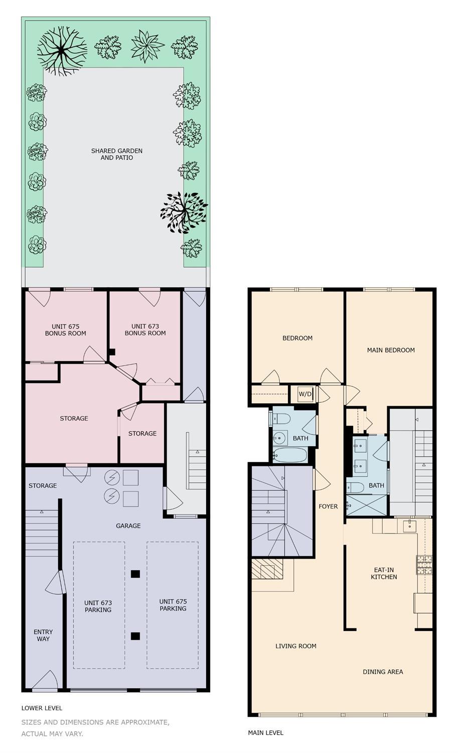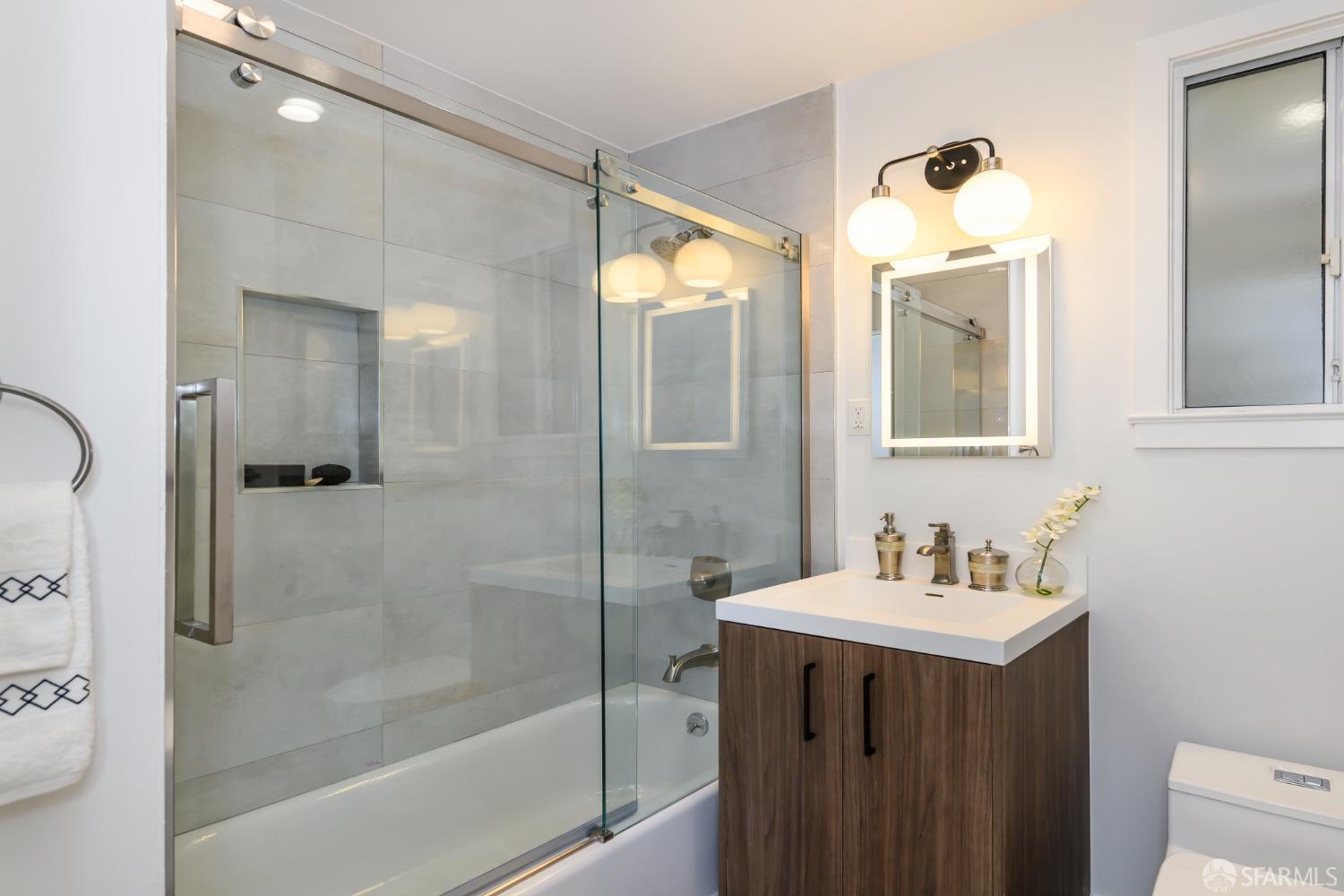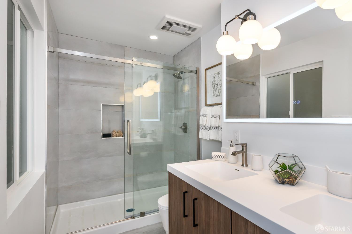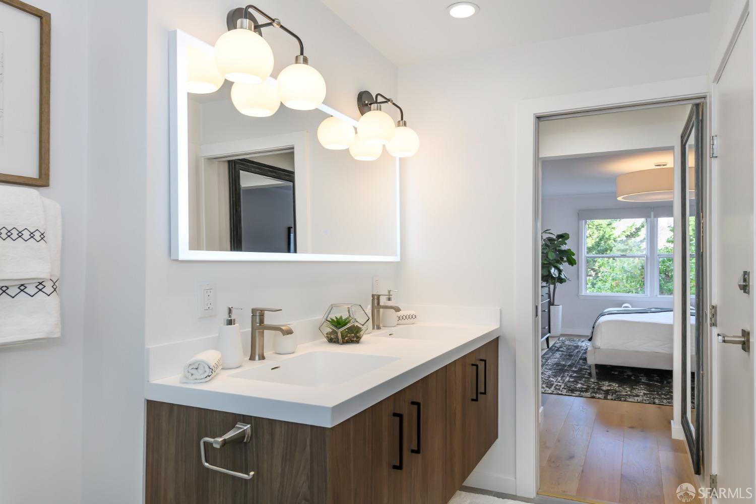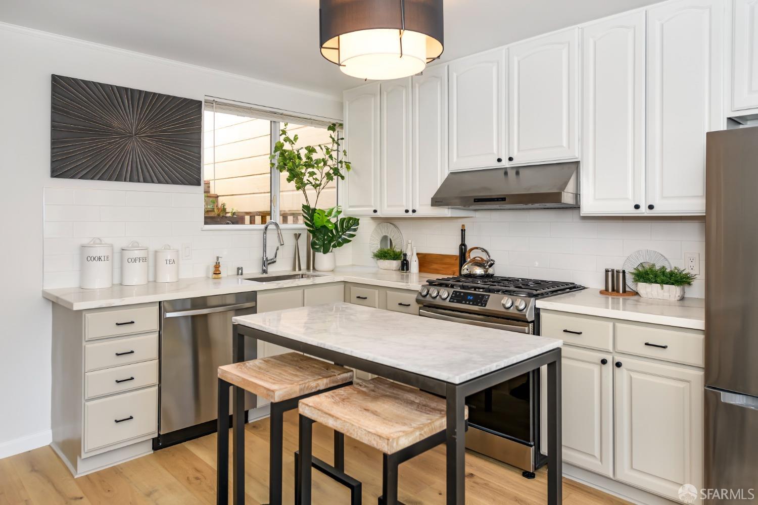 Live steps from Dolores Park and the Valencia Corridor in this bright, remodeled, mid-century condominium. This full-floor renovated flat has it all: 2 bedrooms (one master suite), 2 bathrooms, bonus room, deeded parking, in-unit laundry, abundant storage, a lovely backyard and low HOA dues. The thoughtful layout features a sun-drenched living room, full-sized dining area and large kitchen towards the front of the unit with both generously sized bedrooms overlooking the tranquil landscaped backyard. On the ground level you'll find side-by-side garage parking along with a bonus room perfect for a home office or gym. Meticulously renovated, this condominium boasts wide plank hardwood floors throughout, new kitchen appliances, remodeled bathrooms, quartz kitchen and bath countertops, full-size washer and dryer, custom closets and top-down/bottom-up roman shades in the living room and blackout shades in the bedrooms. Spend your free time relaxing in Dolores Park, snacking on treats from Tartine Bakery, grocery shopping at Bi-Rite and exploring the many nearby restaurants. This picture-perfect home in a quiet two-unit building checks all the boxes while offering its new owner unparalleled access to one of the most dynamic and desirable San Francisco neighborhoods.