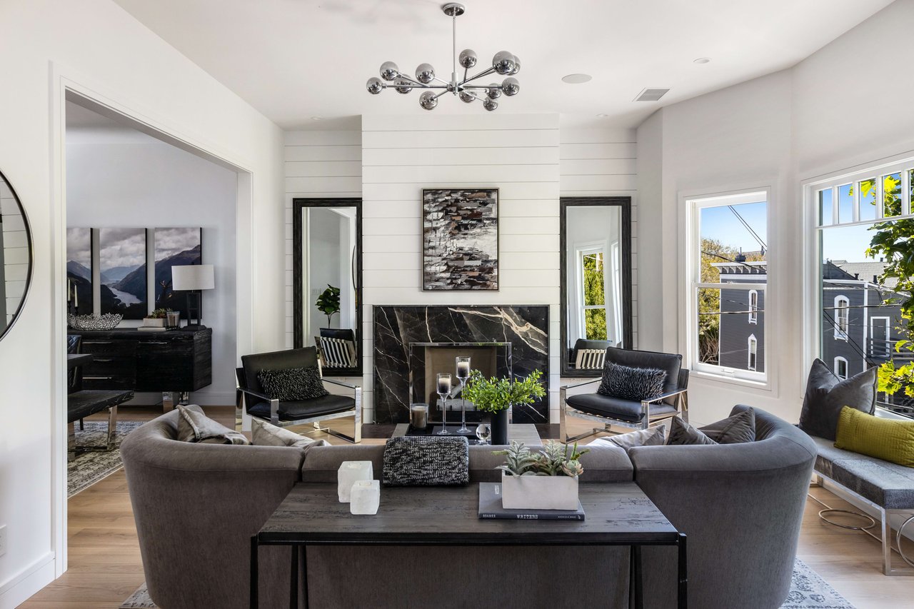 Immerse yourself in the world class views from the top-floor residence with spectacular private roof deck and rejoice in the incredible space and escape into the first-floor residence with private landscaped rear garden and an accessory dwelling unit all to yourself. The home has been painstakingly appointed with a harmonious flow of wood, stone and raw steel. The sumptuous 10” engineered plank white oak floor treatments effortlessly unite each of the homes from beginning to end through an interior design scheme of the utmost sophistication and coherence. Creating drama while maintaining simplicity in design, the formal living rooms in each home are finished with polished Calacatta black Italian marble fireplace surrounds, with raw steel hearths and shiplap accent walls bringing focus to the spaces. The exaggerated room openings allow the homes to flow freely while providing the perfect amount of separation for more modern, post pandemic living. The expansive dining rooms with showcase lighting allow for ease and grace in entertaining for parties of any size. Marble slabs buffeted in undulating textures unite the homes flow from the dining room into the kitchen, where one finds an expansive island with bar seating constructed with a waterfall edge – creating an even more inviting space for your next dinner party or an intimate evening at home. Kitchen appliances include a state-of-the-art suite for the ultimate home chef experience and an island beverage center with room for up to forty-eight bottles of refreshment. With dramatic marble in polished and leather finishes and a custom hood fabricated of raw steel, the homes continue to draw out the inquisitive side of all of us.