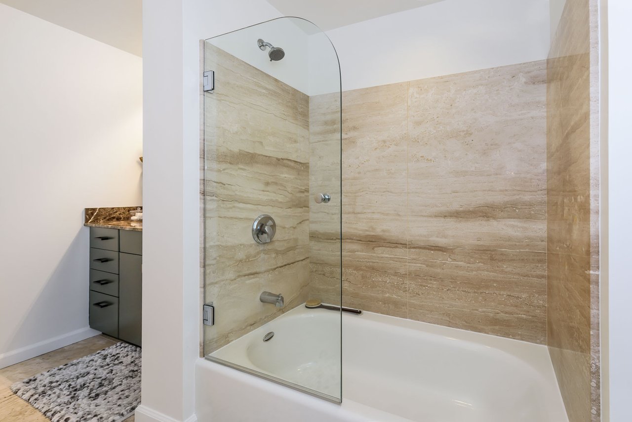 You’ll also enjoy thoughtful touches such as engineered floors and a remodeled kitchen with new appliances and granite countertops. Designer lighting, limestone and marble bathrooms, and mirrored closet doors add stylistic charm. Parking is also available – a true boon in this part of town - as well as secured, deeded storage!